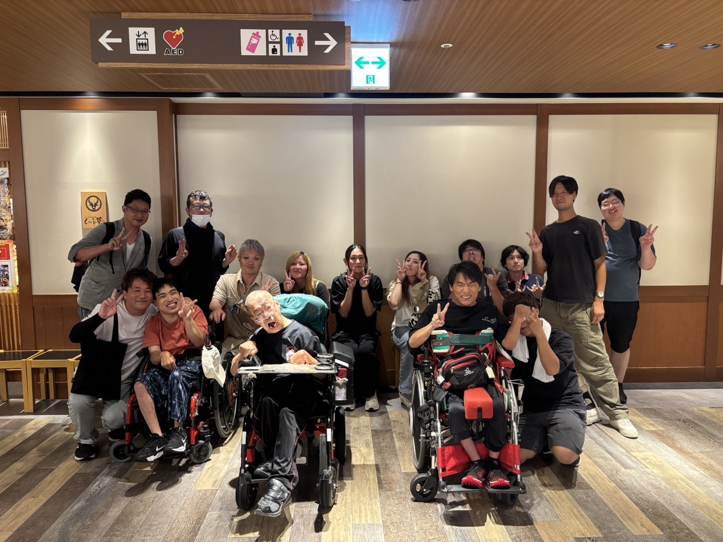 生活介護エースでは、重度障がい者(車いす)の方が多いです。また、車いすで行きにくい場所でも工夫して行けるように努力します。